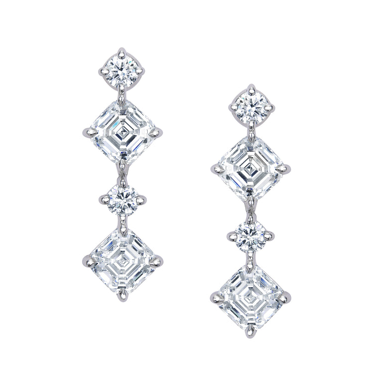 ロイヤル・アッシャー・カット プラチナ ダイヤモンドピアス