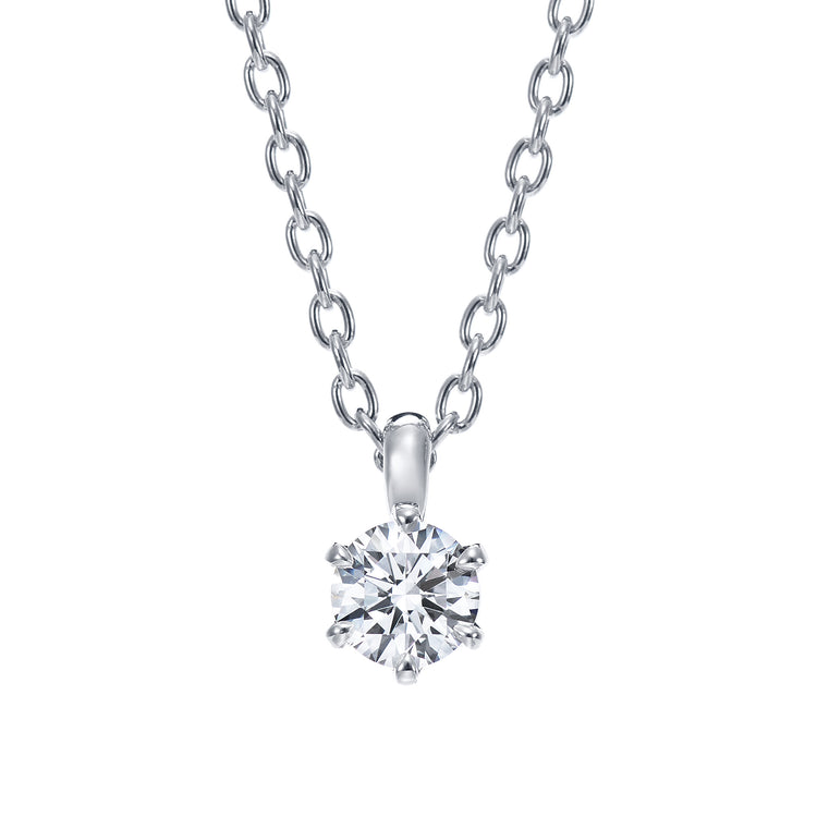 ダイヤモンドを日常的に身につけたいなら、ペンダントタイプを。ダイヤモンドは6本爪でセッティングされ、端正な雰囲気。ロイヤル・アッシャー・ダイヤモンドらしい白い輝きを堪能できます。