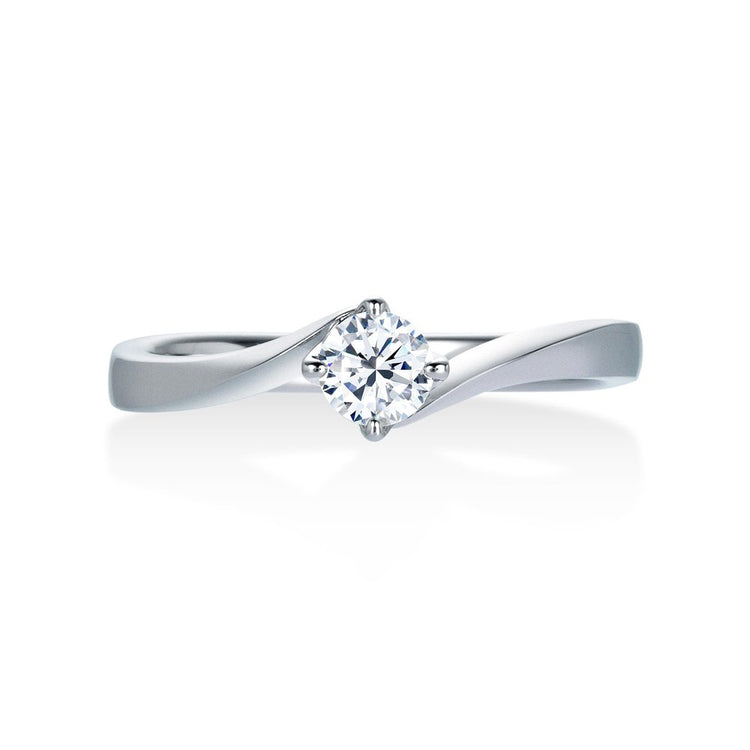 定番のソリテールリングながら、ゆるやかにウェーブを描くアームが身につける人の個性を演出。ダイヤモンドは6つ爪でセッティング。ほどよい高さの台座は光を多く取り込み、ダイヤモンドをより輝かせます。