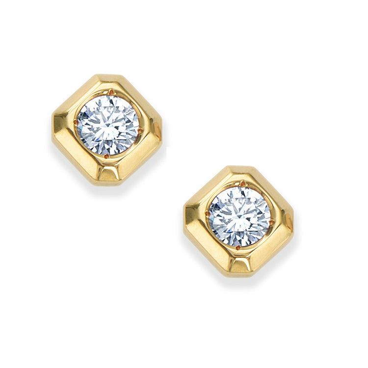 ロイヤル・アッシャー・カットを模したスクエアシェイプのプラチナにダイヤモンドを施したピアス。立体的なフォルムが地金とダイヤモンドの輝きに奥行きを与えてくれます。