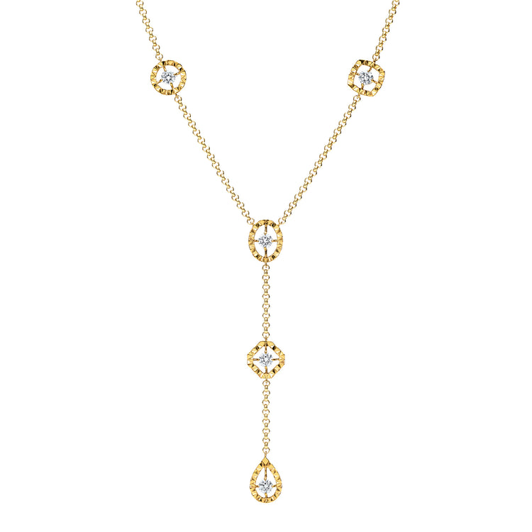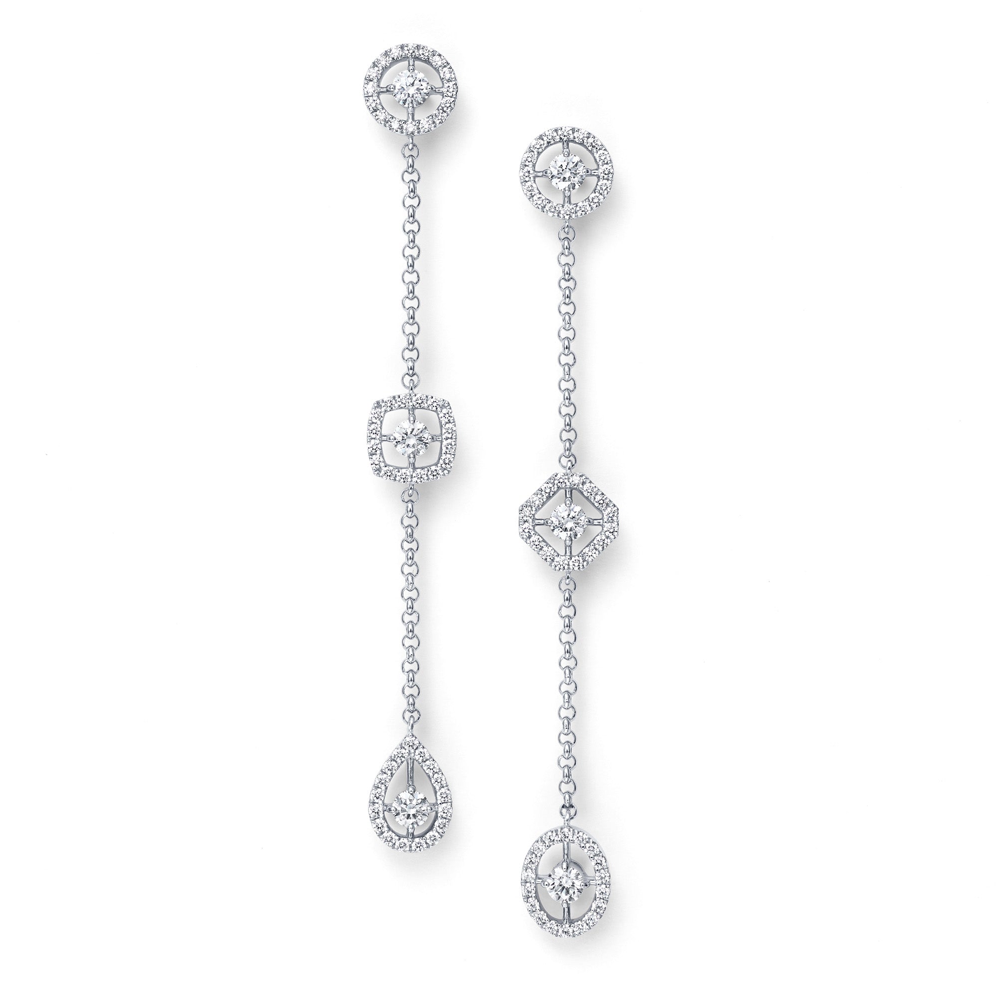 ロイヤル・アッシャーが国際パテントを取得している5つのシェイプ(ロイヤル・アッシャー・カット、ロイヤル・アッシャー・ブリリアントカット、ロイヤル・アッシャー・クッションカット、ロイヤル・アッシャー・オーバルカット、ロイヤル・アッシャー・ペアシェイプカット)のフォルムをアシンメトリーに配した遊び心のあるデザインです。