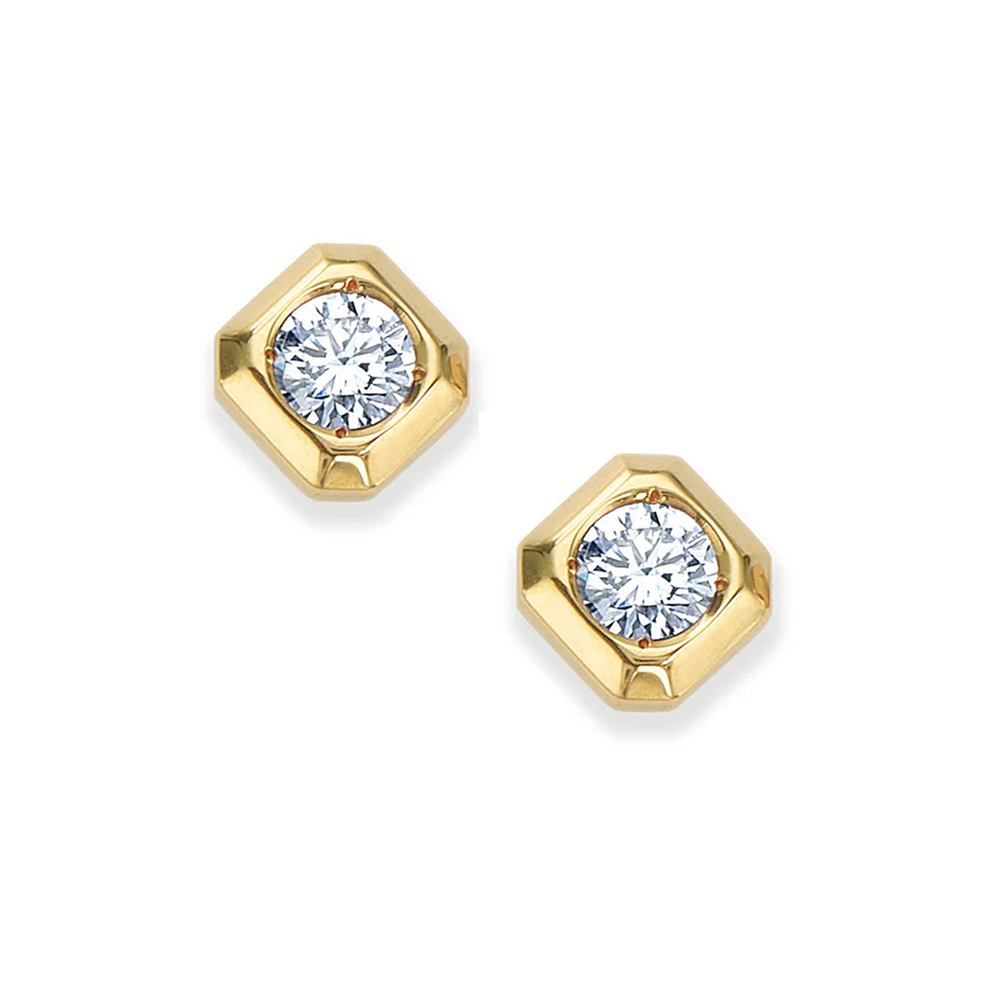 ロイヤル・アッシャー・カットを模したスクエアシェイプのイエローゴールドに、ダイヤモンドを施したピアス。立体的なフォルムが地金とダイヤモンドの輝きに奥行きを与えてくれます。