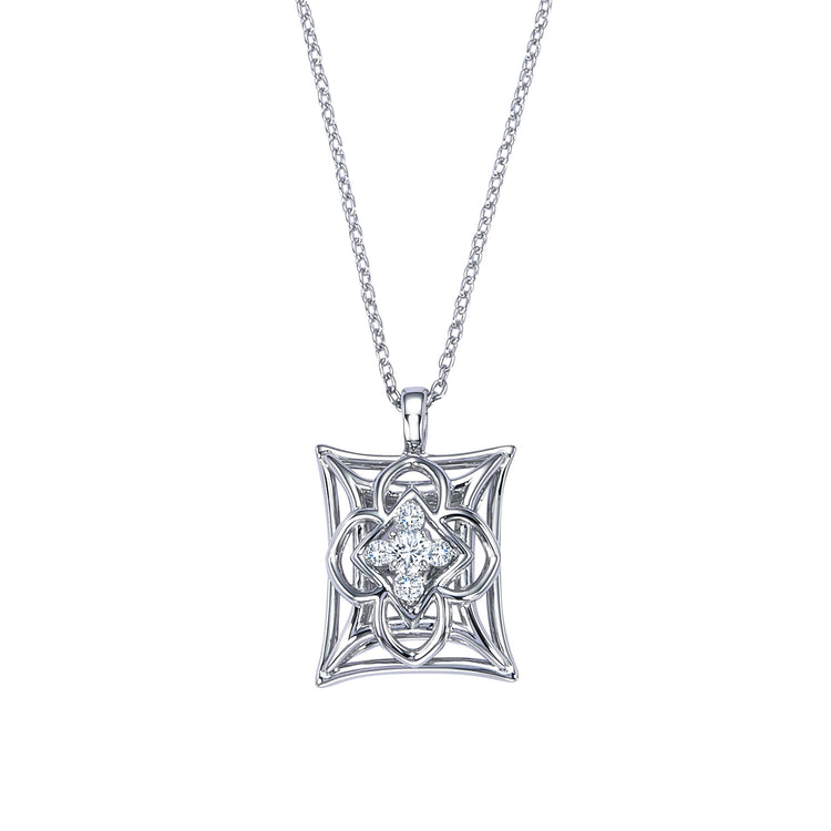 グラフィカルな存在感がひときわ目を引くペンダント。中央からランダムに伸びる放射線状のバーに、ダイヤモンドを施し、無機質ながらも洗練された“モダンライト”を描きました。一つ一つの配置やバランスを計算し、高低差をつけることで立体的な奥行きを生み出したデザインです。