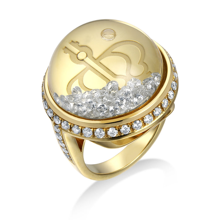 「ライラ」は、ラテン語で【こと座】を意味します。ライラを形作る星の一つ「ベガ」は、こと座の中で最も明るく、日本では七夕の「織姫の星」としても知られています。サイドに配したメレーダイヤの輝きと共に、大きなドームの中で、光を捉えてゆらゆらとダイヤモンドが舞う様は、まるで夏の夜空に一際輝く「ベガ」のよう。身に着ける人により一層の華やぎを与えてくれます。