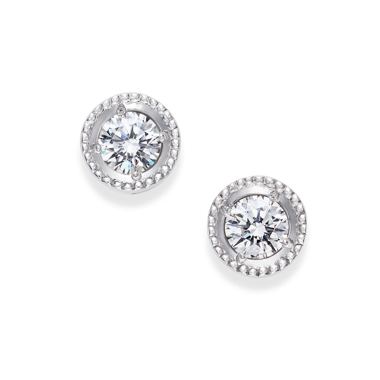 周囲にミル打ちを施し少し厚みを持たせた構造。小ぶりながらボリュームを感じるピアスです。側面に空間を持たせることで、より多くの光をダイヤモンドへ取り込めるようにデザインされています。1粒ピアスとは一味違うスタイルをお楽しみいただけます。普段使いやギフトにも最適です。